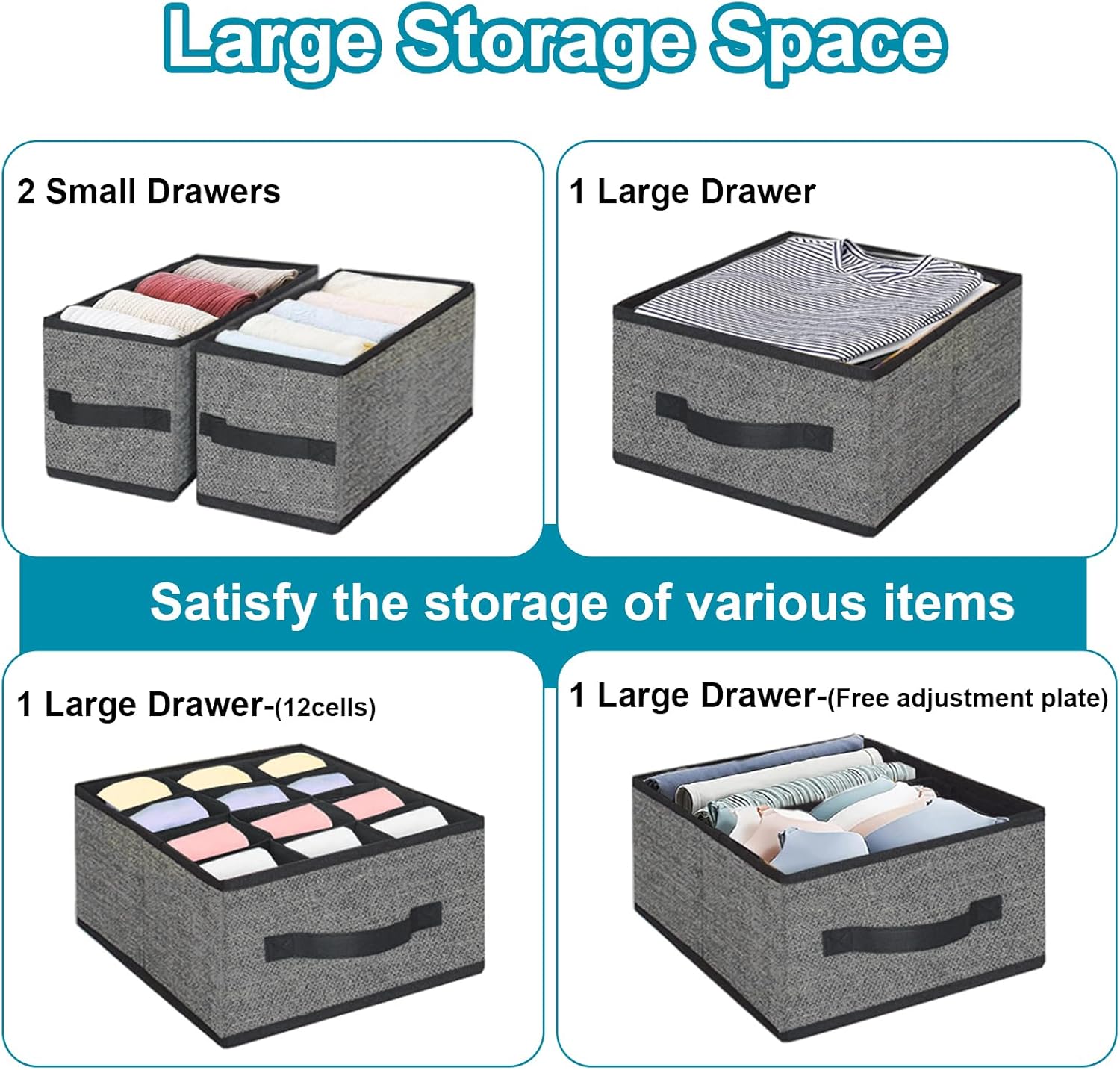 • Drawers: 5 removable drawers (sock, underwear, bra, T-shirt, multipurpose)